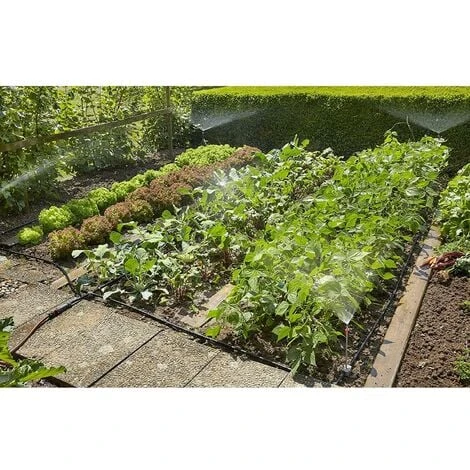 Das Gardena 13015-20 Micro-Drip-System Start Set dient zur komfortablen Bewässerung von Blumen- und Gemüsebeeten und ist optimal für kurze Vegetationszeiten in Gemüsebeeten geeignet. Das druckreduzierende Basisgerät wird mit Hilfe eines Schlauches an den Wasserhahn angeschlossen. Über das Rohrsystem und die flexibel einsetzbaren Sprühdüsen mit unterschiedlichem Ausbringungswinkel werden die Pflanzen schonend bewässert.