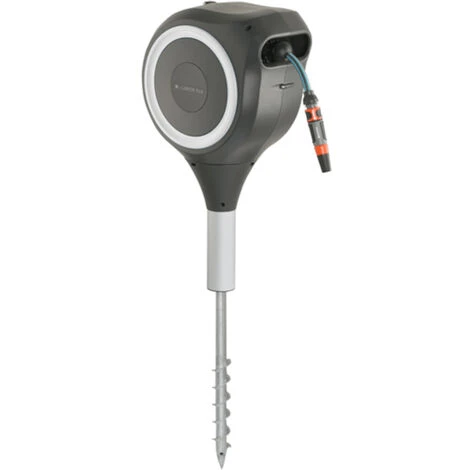 Die Gardena 18606-20 Schlauchbox RollUp S ist geeignet für kleinere Gärten. Sie kann überall im Garten platziert werden, da sie auf einem stabilen Metallspieß steht, welcher in den Boden geschraubt wird. Die Box ist um 360° schwenkbar und der Schlauch ist 15 Meter lang. Der Schlauch verfügt über kurze Arretierstops, d.h. der Schlauch rastet automatisch in kurzen Abständen ein, sobald man stehen bleibt. Die Schlauchbox folgt den Bewegungen beim Gießen und verhindert, dass der Wasserschlauch abknickt oder sich verheddert. Nach dem Gebrauch wird durch ein kurzes Ziehen die integrierte Feder aktiviert und der Schlauch wird automatisch aufgerollt. Die RollControl-Technologie gewährleistet ein sicheres und kontrolliertes Aufrollen. Die Schlauchbox besteht aus hochwertigen Materialien und ist UV- und frostsicher. Die Lieferung erfolgt mit einem flexiblen Anschlussschlauch, allen notwendigen Montageteilen, Original Gardena Systemelementen und einer Spritze mit zwei verschiedenen Sprühstrahloptionen.