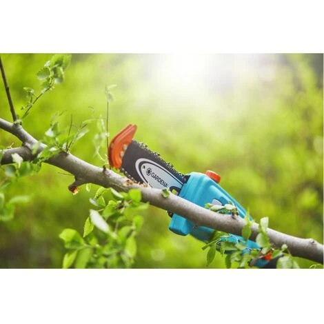 Selbst mit einer Leiter kommt man oft kaum oder gar nicht an Äste hoch oben in den Wipfeln. Doch auch in luftigen Höhen muss geschnitten werden. Dabei muss Klettern gar nicht sein: Mit dem GARDENA Akku-Teleskop-Hochentaster TCS 20/18V P4A kannst Du mit festem Stand vom Boden aus agieren.