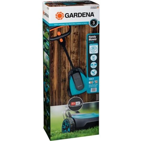 Der perfekte Akku-Rasenmäher für kleine Gärten mit bis zu 50 m² Rasenfläche: Gardena Akku-Rasenmäher HandyMower 22/18V P4A soloMit dem Akku-Rasenmäher