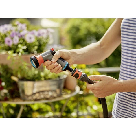 Die GARDENA city gardening Balkonbrause hat eine handliche und kompakte Form und dank reduziertem Wasserdurchfluss einen besonders sanften Brausestrahl, der eine pflanzenschonende Bewässerung ermöglicht. Der ergonomische Handgriff mit Weichkunststoffelementen sorgt für größtmöglichen Komfort während des Gebrauchs. Der Wasserdurchfluss kann stufenlos angepasst werden. Die integrierte Dauerarretierung der Auslösetaste ist besonders ergonomisch und sorgt dafür, dass Ihre Hand nicht ermüdet. Mit integrierter Frostschutztechnologie