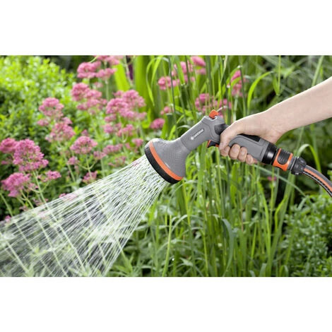 Ideal zur Bewässerung von Beeten und größeren Flächen. Langlebige Qualität durch Frostschutz. Griffige Handhabung durch Weichkunststoffelemente. Stufenlos regulier- und absperrbarer Wasserstrahl. Die Brause verfügt über ein integriertes Schmutzsieb zum Herausnehmen und Reinigen