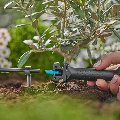 Das handliche und vielseitig verwendbare Montagetool für das Micro-Drip-System Das universal einsetzbare Montagewerkzeug von GARDENA ist eine ideale Unterstützung für die Installation des GARDENA Micro-Drip-System. Es ist optimal geeignet für alle Handgriffe, die zur Montage, Wartung und Instandhaltung des Micro-Drip-Systems benötigt werden. Nutze die sieben verschiedenen Funktionen des Universalwerkzeuges wie die präzise und mühelose Lochung in 13-mm-Verlegerohre. Mit Hilfe der robusten, langlebigen Spitze gelingen Dir die Einstiche mühelos. Danach drehst Du bequem Tropfer, Sprühdüsen oder Endstopfen in die Lochung des Verlegerohres. Das Montagewerkzeug liegt durch den ergonomischen Griff gut in Deiner Hand. Dadurch kannst Du komfortabel und einfach arbeiten. Drehe zum Beispiel Micro-Drip-System-Komponenten wie Endtropfer am Ende des 4,6-mm-Verteilerrohres oder Sprühdüsen in ein Verbindungsstück ein. Zusätzlich ist das Werkzeug für das Greifen und Eindrehen eines Verlängerungsrohres für Sprühdüsen geeignet. Das Universaltool bietet Dir eine Aufnahme der Reinigungsnadel, wodurch Du filigran Tropfer von Schmutzpartikeln säubern kannst. Hersteller-Art: 13313-20EAN-Code: 4078500058681